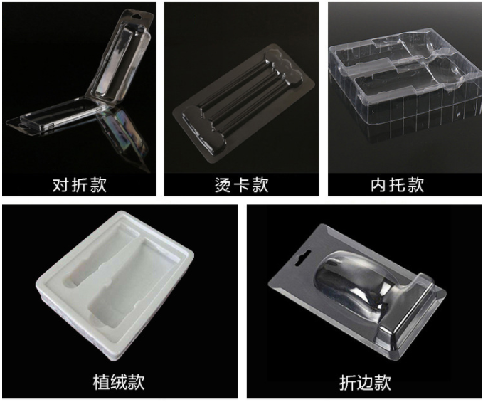 也叫塑料內(nèi)托,選用吸朔加工工藝將塑膠片材做成特殊凹形的塑膠,將商品放置凹形內(nèi),具有維護(hù)和清理商品的功效。