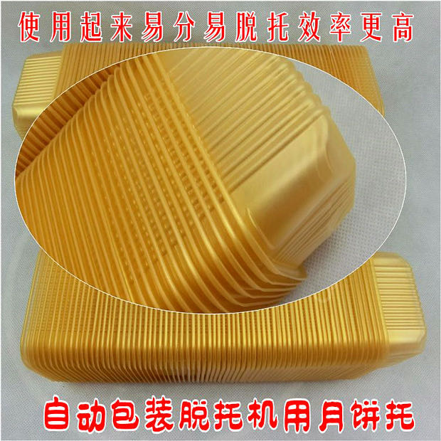 第.一,是塑料托盤,用于固定月餅,減震,減少月餅在儲運過程中的機械損傷,同時可以把月餅防潮劑袋隔開。 PET 硬PVC 。