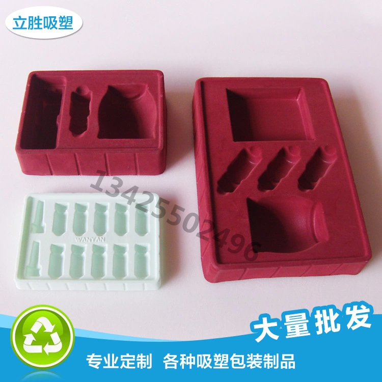 植絨布吸朔與木制托盤(pán)對(duì)比,植絨布吸朔內(nèi)托環(huán)境衛(wèi)生清潔,便于清洗,在應(yīng)用中具備輕質(zhì)、無(wú)釘刺、耐腐蝕、不發(fā)霉等特性,植絨布吸朔使用期是木制托盤(pán)的5—7倍。除此之外,植絨布吸朔內(nèi)托合乎環(huán)境保護(hù)規(guī)定,即使是植絨布吸朔廢盤(pán)原材料能夠 綜合利用。植絨布吸朔每個(gè)制造行業(yè)中運(yùn)用普遍,關(guān)鍵的優(yōu)勢(shì)是質(zhì)量感較強(qiáng)、且經(jīng)濟(jì)發(fā)展性價(jià)比高,對(duì)很多制造的包裝設(shè)計(jì)更為合理,因此植絨布吸朔的出現(xiàn)迅速攻占了內(nèi)托鄰
